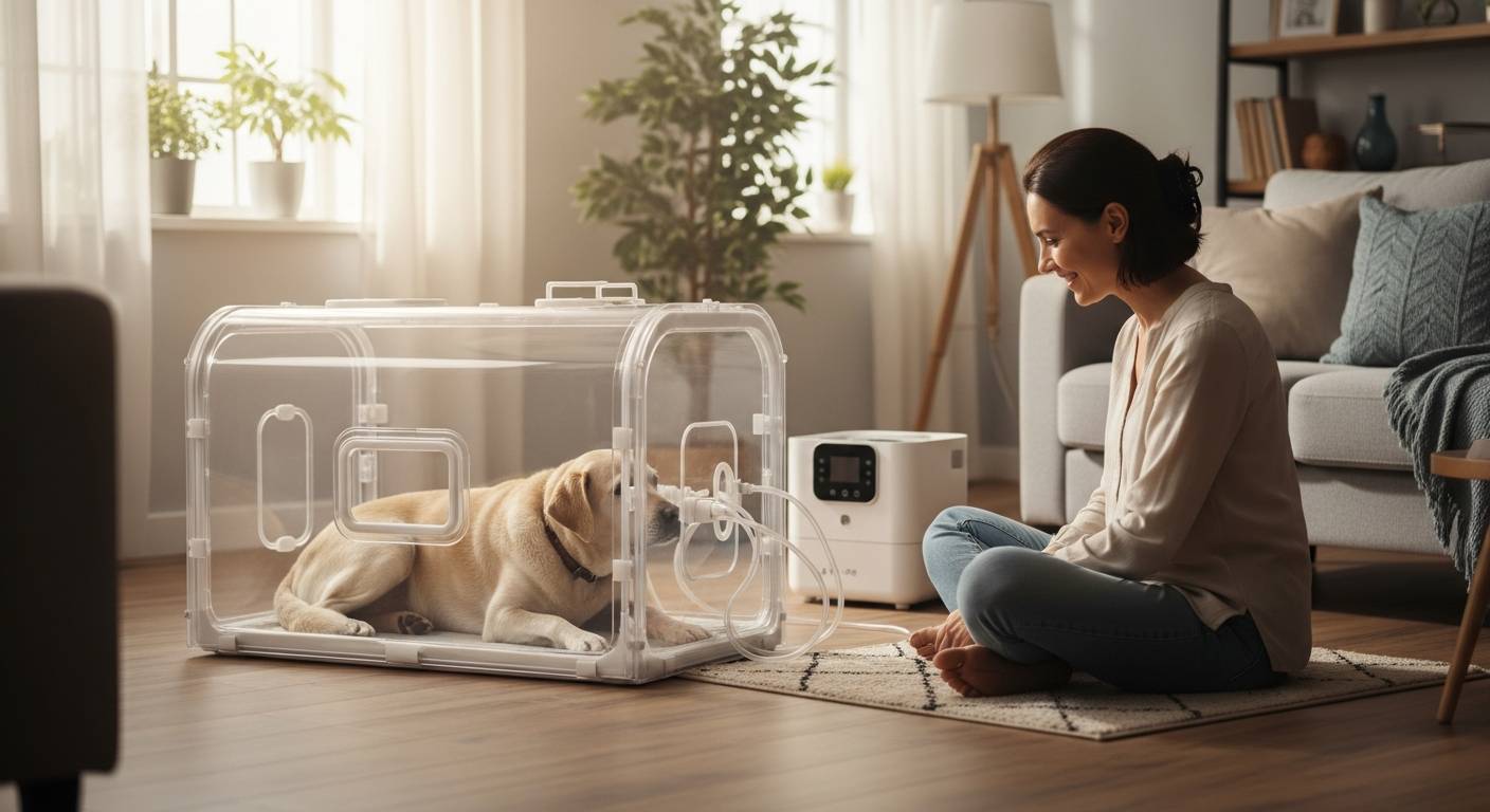 愛犬や愛猫が呼吸をするたびに肩を揺らしていたり、苦しそうに口を開けていたりする姿を見るのは、飼い主にとって身を切られるような辛さがあります。「もっと何かしてあげられることはないか」「酸素室をレンタルしても本当に楽になるのだろうか」と、導入を迷っている方も多いのではないでしょうか。結論から言えば、心臓病による肺水腫や気管虚脱、喘息、肺炎などの呼吸器トラブルを抱えるペットにとって、高濃度酸素環境を用意することは、在宅ケアにおける最も有効な選択肢の一つです。